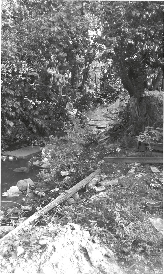 El barrio Esperanza está emplazado en la costa del río Riachuelo y siete barrios se ubican en un área baja conocida como “La Olla”. Como se expuso anteriormente, son lugares frecuentemente afectados durante las inundaciones o anegamientos, pero con áreas internas de mayor criticidad, con altos niveles de vulnerabilidad ambiental y hacinamiento de hogar o intralote. Este es el caso del Sol de Mayo y Quinta Ferré, divididos por el arroyo Santo Domingo, el cual fue densamente ocupado en su valle de inundación. Se trata de un foco de contaminación y de riesgo por el aumento de los caudales pluviales conducidos hacia el río (imagen 6) y que permanece invisibilizado para la agenda pública, a pesar de los reclamos de la Red Vecinal Zona Norte. Las intervenciones estatales en el área han sido en los últimos años insignificantes y deficientes: enripiado de alguna vía principal, limpieza superficial del arroyo, colocación de postes o construcción de un número reducido de viviendas.