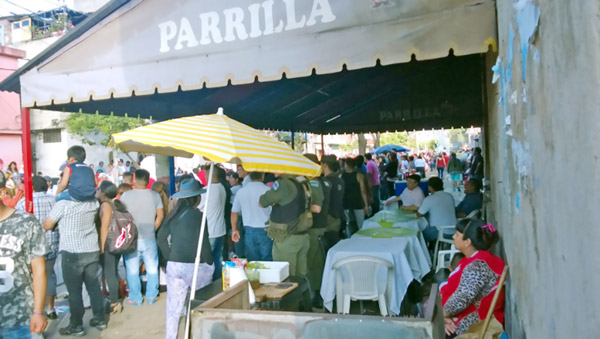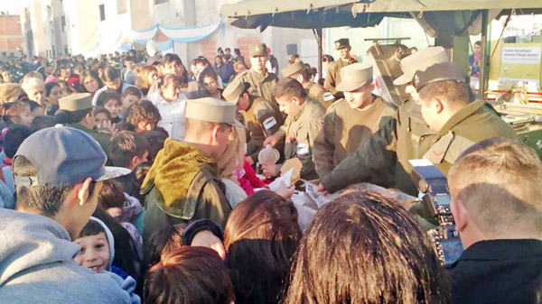 Fuente: elaboración propiaLa cantidad de público durante esta parte final era grande. Enfrente del Centro de Primera Infancia, un grupo de gendarmes había montado una carpa y empezado a servir alfajores, tortas fritas y chocolate caliente7. Se hicieron largas filas alrededor. Mientras tanto, la suboficial joven antes mencionada me señalaba entre el público a un agente de inteligencia, vestido con ropa deportiva oscura, disimulado entre el público: “Está ahí para prevenir se arme lío”, me dijo.