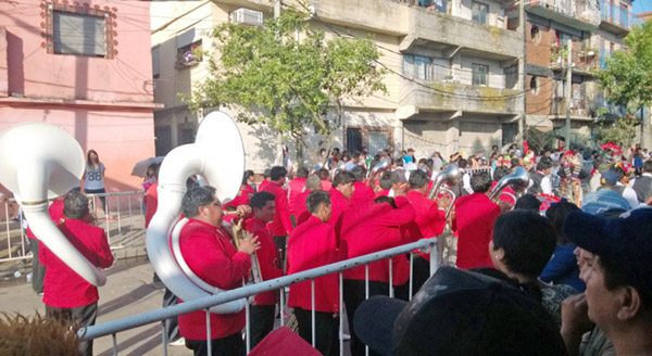 Fuente: elaboración propiaPor último, en el momento de mayor presencia de público, el locutor presentó el número final: la “Compañía Tinkus Masis Potosí”, grupo de baile carnavalesco boliviano que empezó a tocar y bailar una música muy festiva que no parecía tener final, hasta que repentinamente se cortó el sonido. Una gendarme joven que estaba a mi lado y que conocía de otras visitas de mi trabajo de campo exclamó preocupada que se podían llegar a enojar porque les habían cortado la música. “Se nos viene el barrio encima”, dijo. Me pareció que el locutor se percató del malestar en el público, e intentó salvar la situación refiriéndose a los bailarines como representantes artísticos de la “comunidad hermana” de Bolivia.