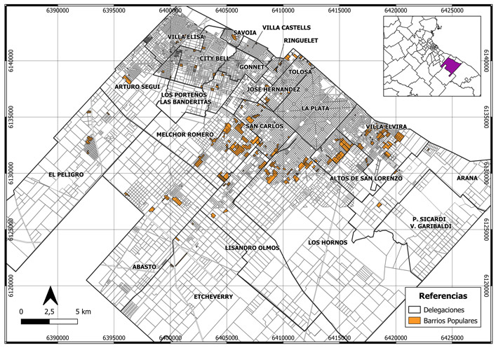 Fuente: elaboración propia.Numerosos estudios sobre La Plata analizan procesos signados por las lógicas mercantiles, de la necesidad y por las políticas públicas (Frediani et al., 2012; Del Río, 2016; Del Río & González, 2018; Relli, 2019; Di Croce Garay, 2019). En este partido, los barrios populares se conformaron en su mayoría a partir de un proceso de toma de tierras, y sus condiciones habitacionales son de extrema vulnerabilidad. Durante la pandemia de COVID-19, a las condiciones críticas de hábitat y vivienda se sumaron la dificultad de obtener ingresos, la insuficiente cantidad y/o demoras en la entrega de mercadería a los comedores y merenderos y las complicaciones para acceder a elementos de higiene debido a la escasez y/o a los elevados precios en los comercios barriales (Comisión de Ciencias Sociales de la Unidad Coronavirus COVID-19, 2020).