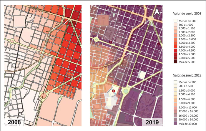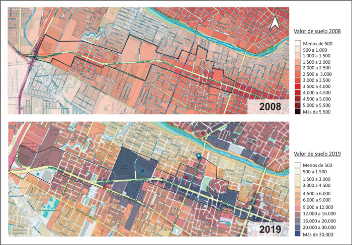 Valor de Tierra Urbana 2008-2019 en el Corredor Colón.