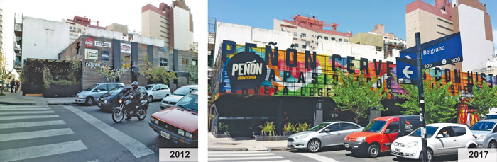 En el barrio Güemes algunos referentes de la arquitectura se encargaron de transformar fachadas e inmuebles que crearon una marca comercial identificatoria. Esto se puede ver reflejado en la propaganda barrial, que ofrece un paquete de experiencias completo. Es decir, el recorrido en el sector consolidado comienza en la feria artesanal, sigue por las galerías y locales comerciales y finaliza en bares o restaurantes de imagen renovada. A riesgo de simplificar, se pueden mencionar algunos de los emprendimientos: galería “Convento” de Estudio Montevideo, realizado por Pablo Dellatorre (2018); galería “Muy Güemes”, de Agostina Gennaro, María José Péndola y Emilio Bruno (2014); franquicia de la cerveza Patagonia pertenece a AB-InBev (2017), Peñón cervecería (2016) de Marcelo Roggio, socio fundador de la marca, entre otros (figura 8). Además de la ubicación, las características comunes de estos locales son la inversión privada y la forma de atraer potenciales clientes con la exhibición de sus productos.