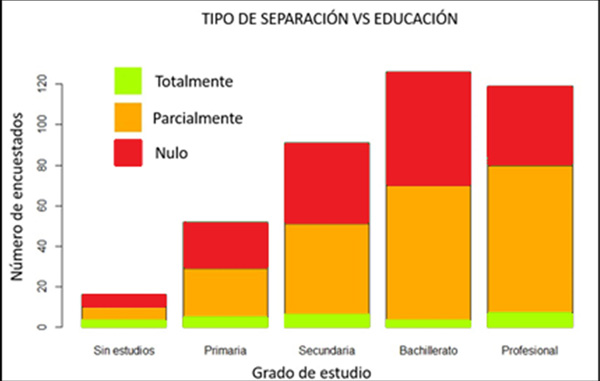 Además, se analizó la relación entre el nivel educativo de los encuestados y su comportamiento en la separación de residuos. Se encontró que no existe una correlación clara entre los dos factores, ya que se observó un comportamiento similar en cada nivel educativo (figura 5).