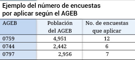 Ejemplo del número de encuestas por aplicar según el AGEB