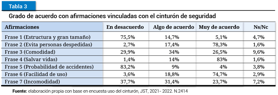 Grado de acuerdo con afirmaciones vinculadas con el cinturón de seguridad