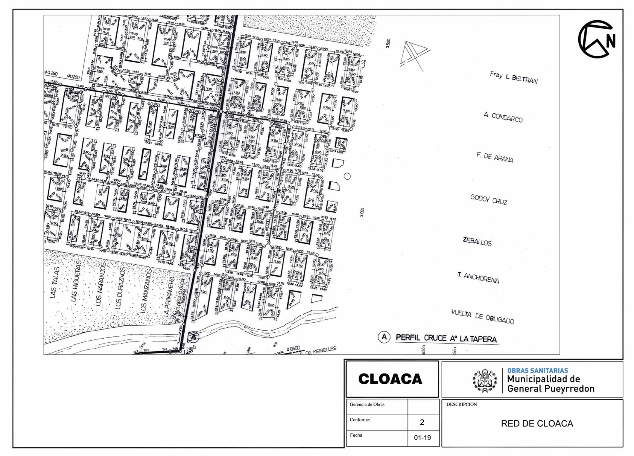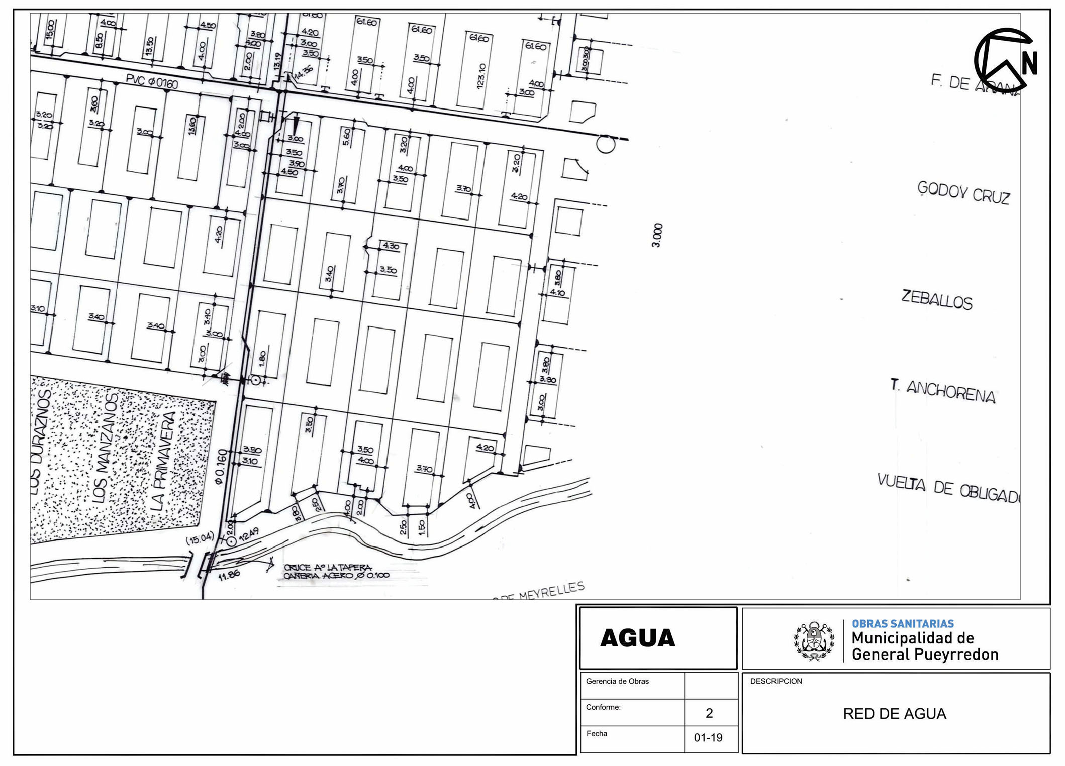 Planos proporcionados por Secretaría de Planeamiento Urbano Municipalidad de General Pueyrredon. Gentileza Ing. Leda TidoneLa dirección del área de cooperativa, ocupada por un referente del entonces incipiente movimiento social “Barrios de Pie”, propuso como lugar de reunión una casa del barrio para la convocatoria entre los vecinos, en especial con aquellos de activa participación en el reclamo del agua. En este punto se iniciaron conflictos que dividieron en dos la posible red de gestión. Por un lado, la alianza entre el MGP- Secretaría de Producción y la agrupación Barrios de Pie por el control político y económico de la cooperativa y, por otro, OSSE, instituciones de capacitación cooperativa y los vecinos que impulsaban modos más abiertos y sin mediaciones externas de participación local.