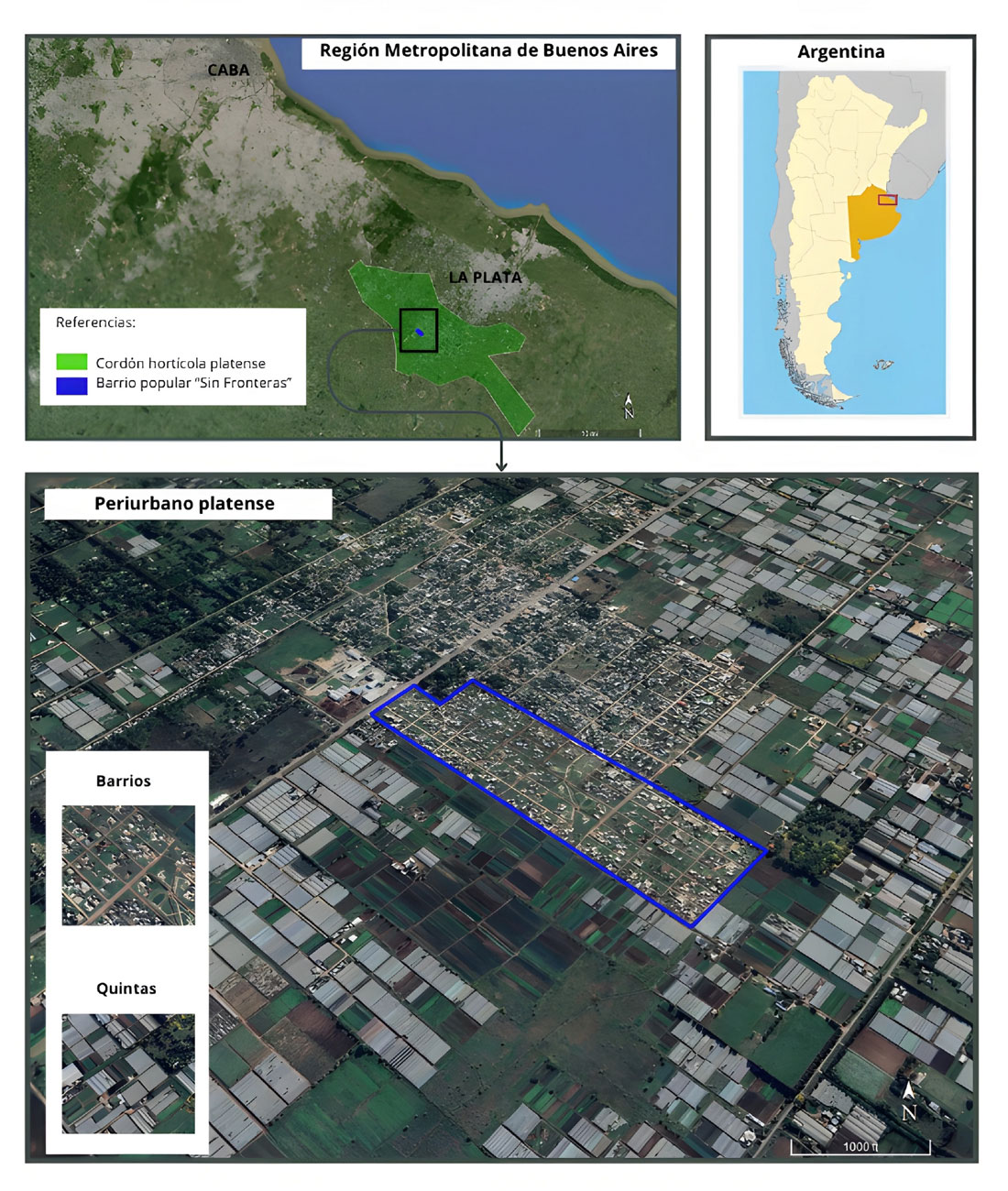 Sin embargo, en las últimas dos décadas, la actividad productiva del periurbano platense está siendo disputada por otros usos del suelo, especialmente el residencial (Frediani, 2010; Mosca, 2022; Ríos & Rocca, 2022) . Se construyen barrios cerrados y clubes de campo, se subdividen parcelas rurales para emplazar viviendas en casas quinta “amplias” y “verdes”, se ocupan tierras donde se levantan barrios populares. De esta manera nos encontramos hoy con un espacio periurbano que es habitado por una multiplicidad de actores sociales que producen configuraciones espaciales diversas y desiguales. En este trabajo proponemos adentrarnos en dos de ellas: las quintas productivas, emplazamientos históricos de la producción hortícola; y los barrios populares, una de las modalidades que viene disputando con más fuerza los usos productivos del suelo.