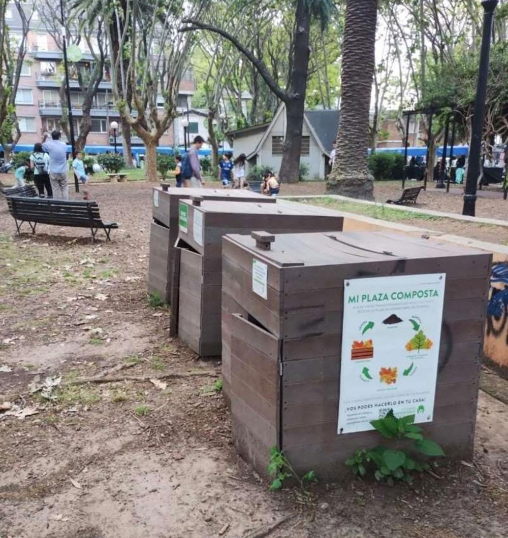 Compostera del programa “Mi Plaza Composta” en Plaza Vicente López, Buenos Aires, Argentina (2023).
