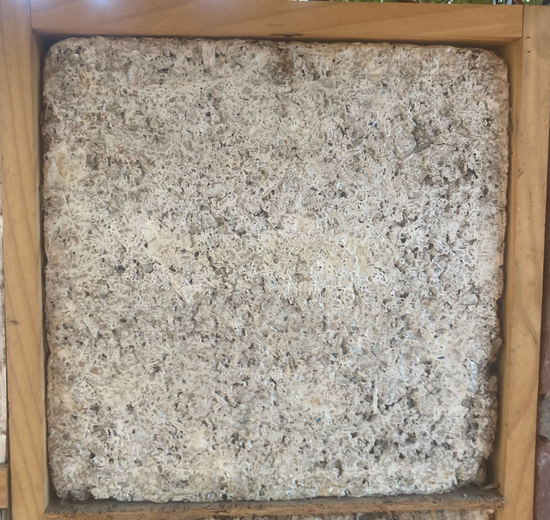 Placa de residuos celulósicos ligados con micelio.
