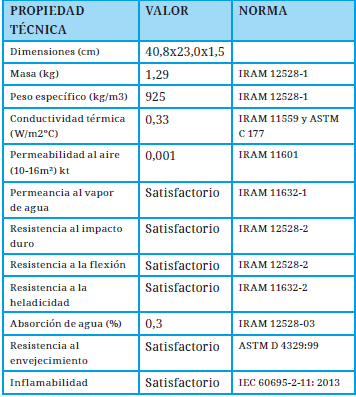 Ventajas: se destaca su resistencia al impacto duro, no se rompe con la acción del granizo. Posee alta resistencia a la flexión, por lo que se evitan roturas por caídas de las piezas (Tabla 2). Ofrece una aislación térmica mayor que otros componentes tradicionales, como las tejas de hormigón. Se realizaron diferentes experiencias de coloración de las piezas, en los casos en los que se utilizaron colores más claros la respuesta opto-térmica fue más favorable frente a la radiación solar (Sulaiman et al, 2020).