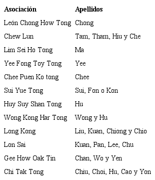 Era frecuente encontrar en la base de las asociaciones, varios miembros con el mismo apellido, ya sea por la llegada de parientes en forma simultánea o porque estos eran traídos a México para encargarse de algún negocio ya establecido por algún familiar. Los apellidos formaban el primer círculo o "clan", de gran importancia en China desde tiempo inmemorial, por su confianza y solidaridad según lo describe Francis L. K. Hsu: