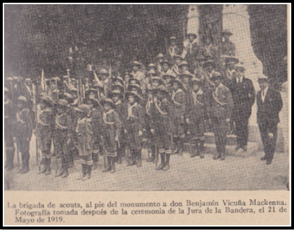 La simpática institución de los Boy Scout que fundó en Santiago el general Baden Powell y que se ha difundido por todo el país, ha resuelto en vista de la situación internacional actual, que todas las brigadas reciban instrucción militar para estar preparados en un caso dado de servir de portadores de mensajes y de otros servicios similares en los regimientos. El Presidente de la Institución en este puerto recibió la comunicación del Directorio General de Santiago en que le daban cuenta del acuerdo adoptado quien inmediatamente hizo las gestiones del caso para conseguir instructores militares [ … ] 58.