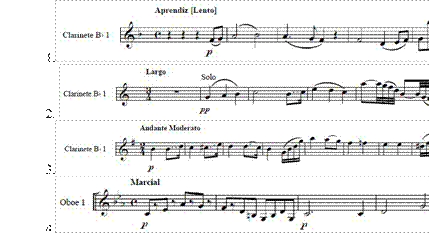 Posteriormente, para la transcripción del documento musical su utilizó el software FINALE 2012a de MakeMusic Inc. En esta traslación se recurrió a criterios textuales que permiten una mejor lectura de las obras gestionadas20. Una vez transcrita, se condujo a la realización de una edición crítica de la Música para ritual masónico; en la que se cambió el clarinete en Do y el cornetín por clarinete y trompeta en Sib respectivamente, dado que los primeros de estos instrumentos musicales se encuentran actualmente en desuso. Asimismo, se normalizaron articulaciones, fraseos y dinámicas en aquellas partes en que no aparecían referenciadas, propiciando una interpretación coherente de las obras; y se realizaron algunos cambios de notas sin que fuera afectada la armonía original.