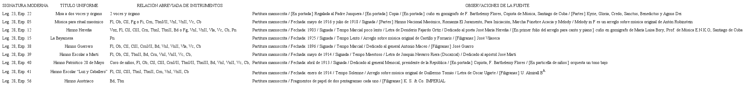 Figueroa Morales, Ramón. Música para ritual masónico. Santiago de Cuba: Archivo de Música de la Santa Basílica Metropolitana Iglesia Catedral, Legajo 28, Expediente 05.