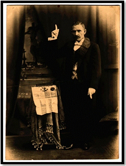 En la Imagen 13 tenemos al periodista y político asturiano Indalecio Prieto (1883-1962) con la mano dentro de la chaqueta. Dicha imagen ilustra un blog llamado Masonería en Asturias y describe a Álvaro de Albornoz como masón. Pero encima de esta fotografía el periodista asturiano Víctor Guerra escribe: “Activo miembro del Comité Revolucionario en 1930, fracaso por el que fueron fusilados en Jaca los capitanes Galán y García Hernández, él mismo fue detenido y procesado junto con otros correligionarios (Gracó Marsa, Luis Salinas, López Ochoa, Cabanellas, Alcalá Zamora, Lerroux, Indalecio Prieto, Martínez Barrios...), como decía Simeón Vidarte: “Masones, republicanos y socialistas seguíamos trabajando activamente por un República democrática”.