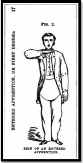 En el dibujo de la Imagen 11 la mano del masón está completamente oculta mientras que la mano del masón en la Imagen 12 muestra su pulgar. Desconocemos el significado de esta diferencia pero las fotografías que encontramos en Internet coincide con el signo del dibujo, si lo fuera.