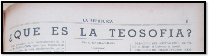Jinarajadasa, Carlos. “¿Qué es la teosofía?” Diario Oficial, Suplemento La República. 25 de agosto de 1942.