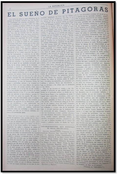 Fuente: “El sueño de Pitágoras”, Diario Oficial, Suplemento La República, 12 de diciembre de 1942, 2.