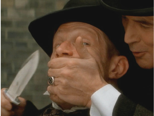 Y ya que hablamos de diferencias, la película Murder by Decree, dirigida por Bob Clark -mejor recordado por la trilogía de Porky’s- y protagonizada por Christopher Plummer, se basa en la premisa del libro de Knight, pero sustituye los nombres de los personajes con referentes en la realidad -el cirujano Gull, el chofer Nestley y el inspector Abberline- por personajes ficticios, quedando únicamente sir Charles Warren y el primer ministro lord Salisbury basados en los personajes reales -y además son quienes cargan con la autoría de la conspiración y su encubrimiento-. De hecho, en este largometraje los encargados de investigar los casos son nada más y nada menos que Sherlock Holmes (Christopher Plummer) y su inseparable Watson (James Mason). En esta versión los masones tampoco salen bien parados y, apegados a la idea de Knight, son los responsables únicos y directos de la conspiración para encubrir al asesino y evitar el escándalo en la familia real.