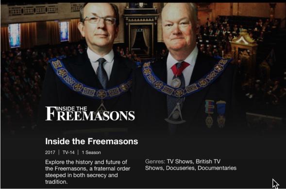 Ahora que las salas de cine se están quedando vacías y la tendencia gira hacia el streaming, tal vez se abran nuevas posibilidades para representar a la masonería en la pantalla, como la nueva comedia de la cadena AMC titulada Lodge 49 -estrenada en la segunda mitad de 2018-, que presenta una sociedad secreta evidentemente basada en la masonería, pero vista desde una perspectiva más relajada al estilo sit com. Claro está que persisten los clichés y los lugares comunes -incluso en el formato para streaming-. Basta ver la autocomplaciente y proselitista serie documental Inside the Freemasons (2017), que ahora está disponible en Netflix, la cual muestra a la masonería como una asociación de camaradería, amistad y filantropía donde abundan la comida, la bebida y las ceremonias, con grandes logias y grandes maestros, rodeado todo de grandes oropeles. Pero, sobre todas las cosas, los niveles de audiencia y los resultados positivos en la hoja de cálculo son los que cuentan, incluso por encima de la recepción crítica, la pertinencia o la innovación en el tratamiento de los temas. Así que, al menos en el futuro cercano, auguro que seguiremos viendo, en las pantallas de todos tamaños, las trilladas representaciones de la masonería que seguirán reforzando los mismos conceptos que hemos construido alrededor de dicha fraternidad desde siempre, de los cuales el cine refleja, apenas, una fracción mínima.