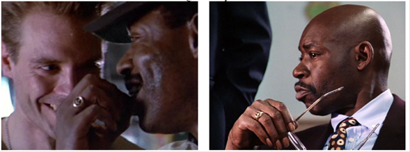 Otro policía corrupto que lleva un distintivo masónico es Charlie Wade, interpretado por Kris Kristofferson en la película Lone Star (1996) de John Sayles. En un momento dado, Wade está con unos personajes que le darán un soborno en un restaurante mexicano. La escena se corta en un primer plano de la mano de Wade sacando de entre unas tortillas un fajo de billetes. En uno de sus dedos se observa un anillo con una escuadra y un compás. Asimismo, un personaje antipático, corrupto y sin escrúpulos, pero ajeno al ámbito policiaco, es el millonario Wade Gustafson, del excepcional filme Fargo (1996) de los hermanos Coen. Durante una toma, se aprecia fugazmente un anillo masónico en uno de los dedos de Gustafson. Otro masón que no es enteramente «malo» en estricto sentido, pero sí es un personaje antipático, es el ambicioso y manipulador productor de televisión Mark Heiss, caracterizado por Christopher Walken, en la película Domino (2005) de Tony Scott.