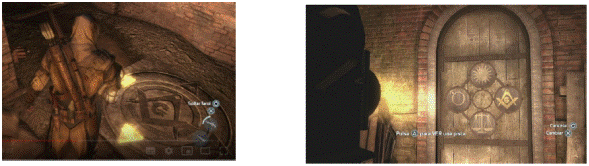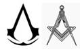 Lo cierto es que el símbolo se asemeja mucho a la escuadra y el compás característicos de la masonería, y presentes en algunas escenas de los juegos, como veremos más adelante, si bien, nunca asociados al siniestro grupo de los assassins.