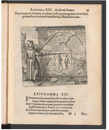 En todo caso, también se aproximarían a ejemplos un poco más avanzados de libros de emblemas alquímicos, en los que la información textual desaparece casi por completo, con el ejemplo por antonomasia del Mutus liber, titulado como el Libro mudo, que intentaba lograr el ideal hermético de traducción de ideas a imágenes para pensar mediante ellas. Y, así, sortear las limitaciones del logos y su lenguaje verbal25.
