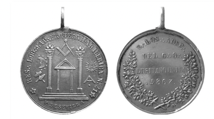 La Logia Fraternidad Ibérica nº 90 fue fundada el 14 de marzo de 187345. El calco de la medalla forma parte del catálogo de medallas masónicas que publicó en 1905 el historiador y arqueólogo Herrera Chiesanova46.