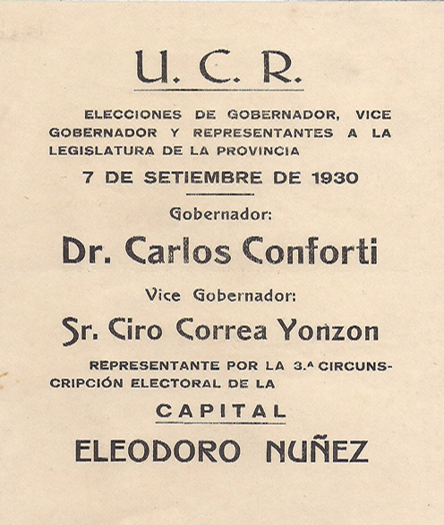 Desde su regreso a San Juan, Conforti estuvo dedicado en buena medida a la actividad privada que sostenía en su estudio jurídico, pero sin perder de vista su carrera política.88El ex diputado nacional se integraría en las filas del radicalismo sanjuanino e incluso competiría junto con su compañero de fórmula, Ciro Correa Yonzon, en la carrera por la gobernación de la provincia en 1930. Sin embargo, esas elecciones se postergarían debido al golpe de Estado de ese mismo año, dando lugar a un largo periodo de intervenciones a la provincia.
