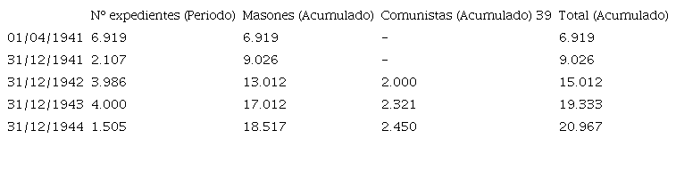 Es conocido que, desde mediados de 1937 en Salamanca, se venían acumulando y estudiando miles de documentos que relacionaban a personas con la masonería; es decir, preparando un verdadero arsenal de expedientes que se utilizarían tan pronto como el órgano judicial comenzase su actuación. Pero todos habían tenido, al menos desde el punto de vista de las autoridades constituidas, la posibilidad de retractarse, limitando, tal vez, los efectos que la ley haría caer sobre sus personas.