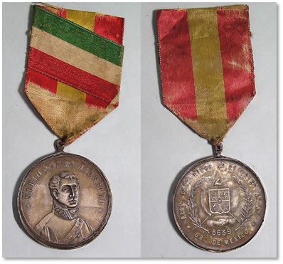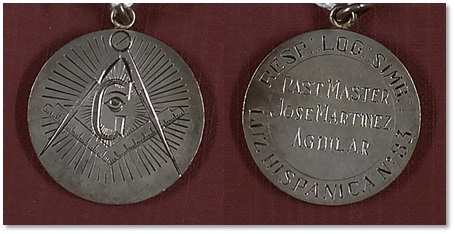 Sobre las relaciones y afinidades entre la masonería mexicana y la española, aquella se inclina desde el siglo XIX por identificarse con la defensa de la democracia y las libertades públicas hacían las instituciones masónicas de un lado y otro del Atlántico. Un ejemplo lo encontramos en la logia mexicana Riego número 21, que acuñó una medalla en plata con referencia al nombre del militar, político liberal y masón español Rafael del Riego (1784-1823). Decoraron el galón con los colores de ambos países: