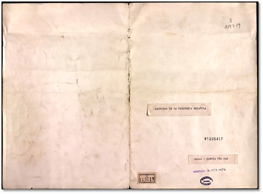 Un documento a considerar para esta Colección es el singular cuadernillo manuscrito de José Luis García Cerdeño, conservado en la Biblioteca Nacional de España, intitulado Archivos de la Masonería Española7. En sus diez páginas mecanografiadas a una cara, el autor aparece con el nombre de “García del Kas”. En el texto se entremezclan recuerdos y notas quizás destinadas para ilustrar artículos que se publicarían en la revista Interviú8. Los apuntes llevan los títulos: “Compramos los archivos de la masonería española” y “Descubrimos, no reclamamos el patrimonio masónico”.