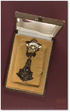 Respecto a la medalla, poco podemos añadir que no hiciéramos en su momento, como en el caso anterior, señalamos que en la leyenda del reverso aparece el texto: Past Master —oficio o condición de Pasado Maestro Instalado— que en el Rito Escocés Antiguo y Aceptado no se contempla ni se le asigna una joya distintiva.