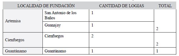 En el período de ocupación norteamericana se contabiliza21 la fundación de ocho logias correspondientes a cuatro provincias y siete municipios, a partir de la división político-administrativa vigente (cuadro 2).