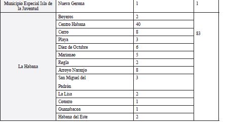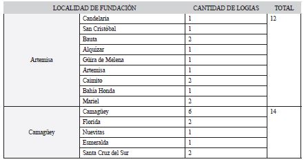 En el período de la República se contabiliza24 la fundación de 259 logias correspondientes a 15 provincias y 119 municipios (más el municipio especial de Isla de la Juventud), a partir de la división político-administrativa vigente (Cuadro 3).