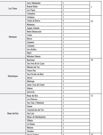 El análisis de la división político-administrativa es otro procedimiento importante en este estudio. Para evitar confusiones y evitar la sobrevaloración de la información relacionada con las logias masónicas en diferentes provincias o municipios de Cuba, se ha establecido una sistemática de valoración basada en la división político-administrativa vigente8. Esto implica respetar la denominación oficial de las provincias y municipios, así como la localidad de fundación de cada logia masónica, y realizar las aclaraciones necesarias en caso de cambios geográficos o de ubicación.