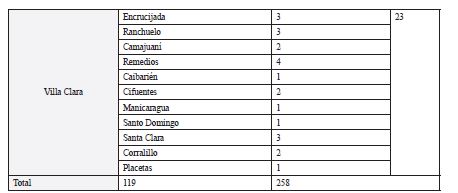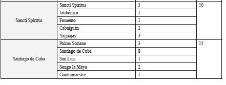 En las provincias de Villa Clara y Sancti Spíritus solo un municipio, en cada una, no tiene presencia masónica: Quemado de Güines (VC) y La Sierpe (SS).