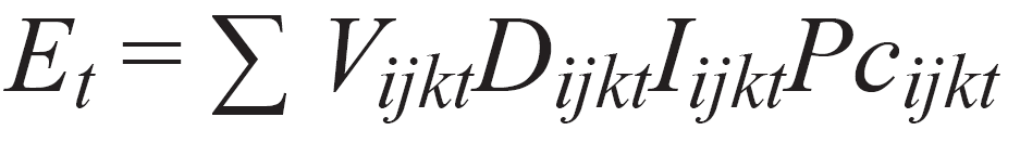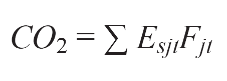 donde E es el consumo energético en el año t del sector s que usa combustible j y F es el factor de emisión por unidad energética. Solamente se estudian las emisiones de CO2 puesto que las emisiones de CH4 y N2O resultan menores que el 2 % de las emisiones totales (IPCC 2014).