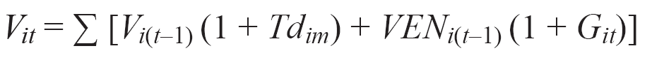 Para 2011-2050, la intensidad de combustible del vehículo tipo i se hace variar de acuerdo con su tendencia histórica y el poder calorífico de cada combustible se mantiene constante. La flota de automóviles privados se obtiene considerando sus ventas y su tasa de desecho por tipo de vehículo, como se muestra en la ecuación (3).