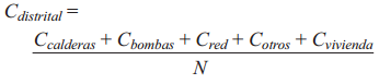Donde N es el número de viviendas conectadas al sistema de calefacción distrital en la zona de estudio, el cual varía para cada escenario.