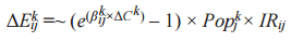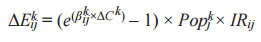 Donde: ΔEkij es el cambio en el número de efectos i debido al cambio de concentraciones del contaminante k en la población j