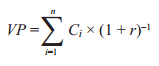 VP valor presente de los costos, Ci corresponde al costo del periodo i, r es la tasa de descuento de un 6% y n es la vida útil del proyecto, el cual considera un tiempo de 30 años (Reidhav y Werner 2008).