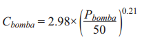 Cbombas corresponde al costo del sistema de bombas, la cual considera dos bombas en caso de falla o de mantenimiento, el costo de cada una se estimó mediante la ecuación (12) y tomando una bomba nominal de 50 HP con un costo de 4000 € (Vallios et al. 2009), así el costo para el 2013 es de 2.98 MMCh$. (Error 9: La referencia debe estar ligada) (Error 10: El tipo de referencia es un elemento obligatorio) (Error 11: No existe una url relacionada)