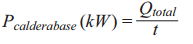 Donde Qtotal corresponde a la demanda anual de calefacción y t al tiempo de funcionamiento anual (horas). La eficiencia de las calderas se supone de un 84 % (Saidur et al. 2011).
