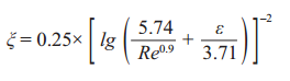 El coeficiente de fricción (ξ) para cada tubería de la ruta crítica se calcula mediante la estimación de Swamee-Jain, con la siguiente expresión: