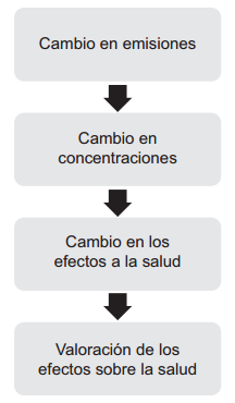 La estimación de beneficios ambientales se realizó de acuerdo con la metodología para la elaboración de AGIES (Análisis General del Impacto Económico y Social), en la norma de calidad para PM2.5 utilizada por el Ministerio del Medio Ambiente de Chile, la cual se resume en el esquema de la figura 1. La evidencia recomienda evaluar los efectos que posea una asociación causal con las concentraciones de PM2.5.