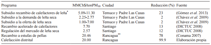 Chávez C., Gómez W. y Briceño S. (2009). Costo-efectividad de instrumentos económicos para el control de la contaminación: el caso del uso de leña. Cuad. Econ. 46, 197-224.