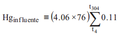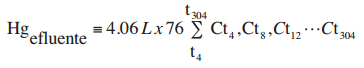 donde: Hgefluente = masa total de mercurio en el efluente no acumulada ni volatilizada (mg), Ct = concentración determinada en el día de operación respectivo (mg/L).