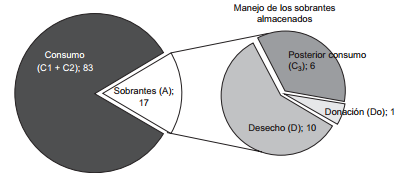Se seleccionaron 384 personas en cada parroquia, las cuales se distribuyeron en diferentes rangos de edad con predominio de individuos entre 19 y 59 años (66.8 %) y aproximadamente igual proporción según el género (52.8 % mujeres y 47.2 % hombres). Lo que refleja la distribución real del Municipio Valencia según el censo 2011 (56.3 % en el rango de edad entre 19 y 59 años, 50.8 % de mujeres y 49.2 % de hombres; INE 2013). El 87 % de los encuestados tienen medicamentos pertenecientes a los grupos farmacológicos seleccionados en sus casas. El 52 % de la población tiene medicamentos prescritos por el médico, mientras que el 48 % posee medicamentos de venta libre, principalmente para atender malestares menores (gripes, infecciones, dolor de cabeza, dolor estomacal). La mayoría de los tratamientos, pocas veces o nunca (81 % para las de venta libre y 90 % con prescripción) deben ser suspendidos por reacciones adversas, lo cual reduce la cantidad de medicamentos que podrían ser desechados. Por otra parte, el 67 % de las personas finalizan el tratamiento establecido sin sobrantes de medicinas (C1) y al 33 % restante le quedan remanentes al finalizar la prescripción (Cuadro III). Bajo la suposición de que estas personas consumen al menos la mitad del contenido del envase al terminar el tratamiento (C2), el consumo inicial asciende a 83 % (C1 + C2) y el 17 % restante es almacenado (A). Adicionalmente, el 40 % de los encuestados manifestaron que consumen después los medicamentos almacenados y el 60 % los desechan, ya que detectan tener medicinas en mal estado. Lo que arroja un resultado de 89 % son consumidos (CT), 10 % son desechados (D) y sólo 1 % son donados (Do; Fig. 3).