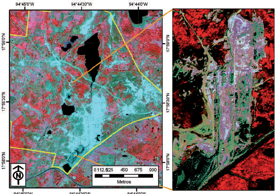 Los datos de PR fueron de gran utilidad para identificar las zonas afectadas por derrames de azufre. En particular, aquellos derrames que cubrían una superficie pequeña y que eran difíciles de identificar en campo por la altura de la vegetación. La información generada con la imagen se complementó con datos de campo e información existente del domo salino y la extracción de azufre.